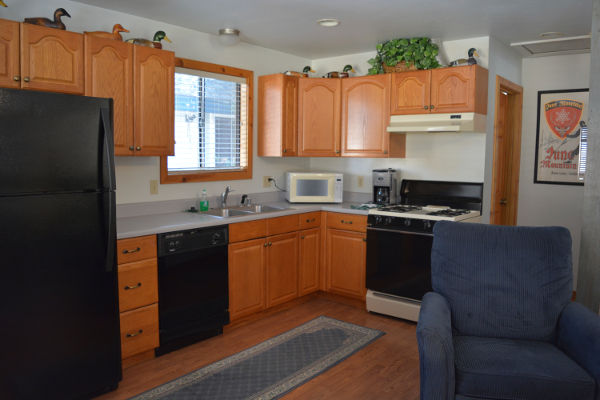 Kitchen with Microwave: The kitchen comes fully equipped with cooking utensils, coffee maker and free coffee.
